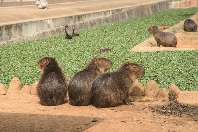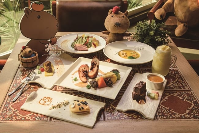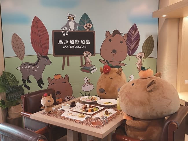 在好望角餐廳,享用主廚從水豚生活習性發想,選用在地食材,結合客家與西式烹調手法,精心料理「福豚派對」主題套餐。用食材表現福豚生態,福豚棲息《風味牛肉丸》就好像福豚浮出水面的樣子,覓食趣,可愛老虎造型的刈包內夾住主廚自己醃製《番茄鮮蔬鹹豬肉》,呼應水豚的外型顏色,主菜樂嬉戲《脆皮雞腿捲》,象徵水豚在叢林吃著喜歡的食物。