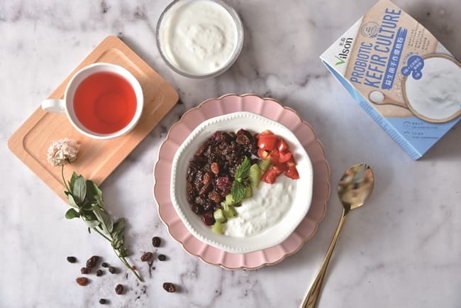 即使外出也可以隨時享受美味優格,《米森益生菌手作優格粉》內含克菲爾Kefir常溫發酵配方,加入6種乳酸菌、活力3益菌及酵母菌等高效活力菌種,超快速30秒手作完成好簡單,微酸不帶甜味,可以搭配果乾、麥片榖物、芝麻粉等,變化出不同的美味吃法,便利又安心。