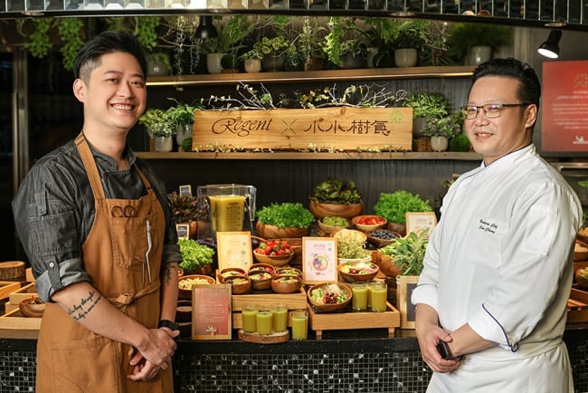 疫情促使現代人更重視健康,台北晶華酒店攜手米其林綠星餐廳—小小樹食,即日起至5月31日於獲得CNN推薦的栢麗廳自助餐廳特別打造一專區,推出「米其林綠星蔬活早餐」,由小小樹食行政主廚徐兆麟Tim悉心規畫出多款兼具健康與美味的特色蔬食餐點,搭配擺滿芝麻葉、羽衣甘藍、彩色番茄等綠意盎然的各式小農時蔬可供消費者無限享用,為國內外商旅房客以及本地消費者打造國際級的健康早餐,栢麗廳早餐服務時間為早上七點至十點、價格為每人880元。