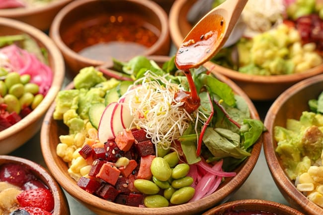 靈感來自於夏威夷波奇碗 (Poké Bowl)的美顏佛陀碗 (Glow Bowl)是將切成塊狀的蒟蒻與豆腐,以甜菜根汁熬煮上色入味,做出如同生食鮪魚的紅寶石光澤,搭配以薄鹽醬油、綠芥末和是拉差醬調和成的日式口味醬汁,比真正的鮪魚 Poké Bowl 還要健康美味。