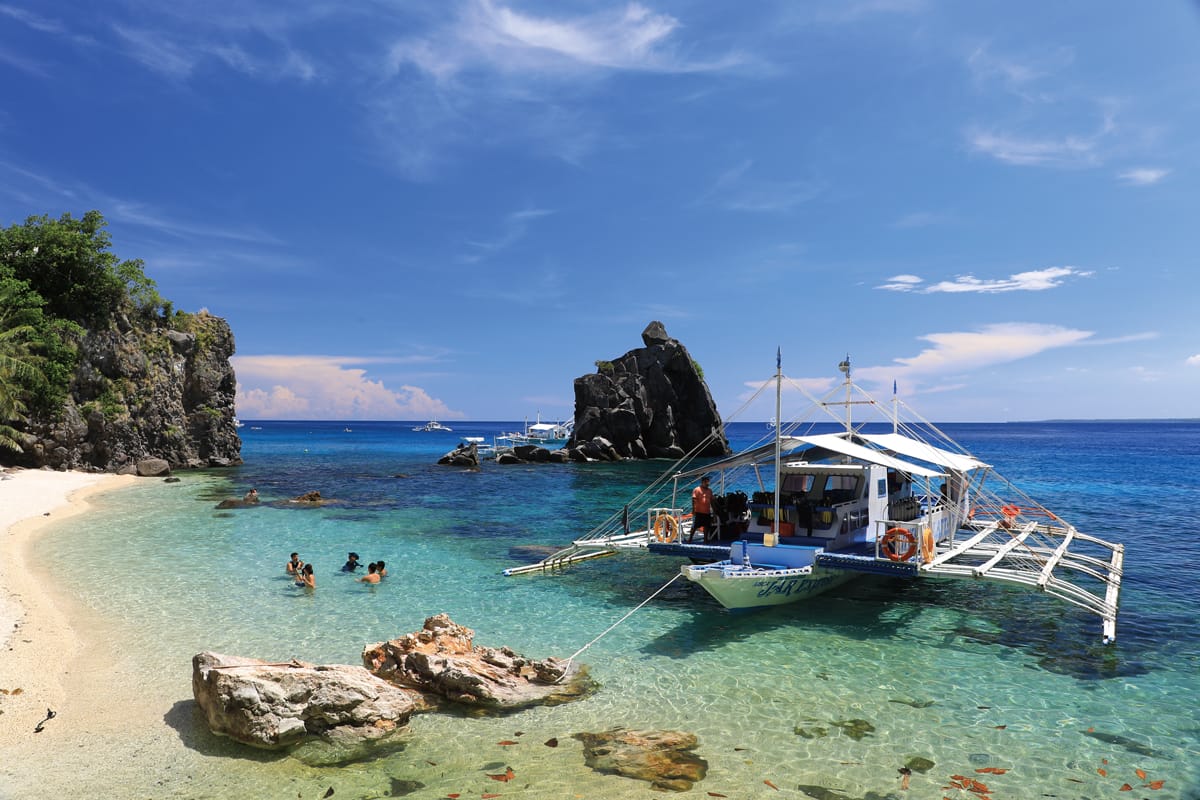 位於菲律賓東內格羅斯海岸外的一個小火山島,整座小島四周海域被規劃為保護區,以美麗的珊瑚礁和多樣的海洋生物聞名,是浮潛和潛水客喜愛的熱門景點,也是觀察海龜、珊瑚礁與海洋生物的最佳海域。上島的遊客大多是參加一日遊行程,必須從內格羅斯本島Malatapay港包螃蟹船前往,通常行程也包含燒烤午餐。阿波島迷人的白色貝殼沙海灘和清澈的海水也非常吸引人,浮潛、游泳、享受日光浴放鬆身心都很棒。島上也有幾家業者提供簡單餐飲以及浮潛與水肺潛水器材租借,畢竟來到阿波島最主要的目的就是下水。因為是保護區,隨處可見海龜覓食,若運氣好,深潛還能見到傑克魚球奇景。