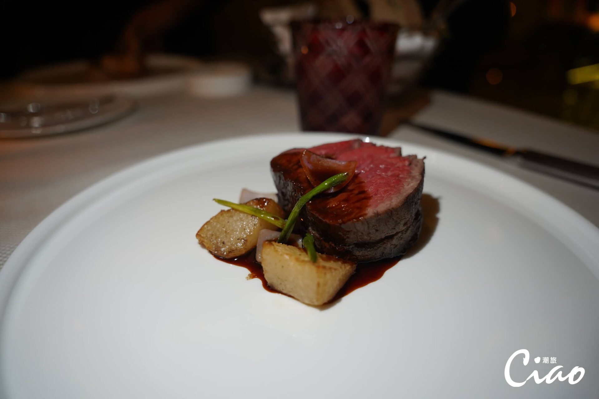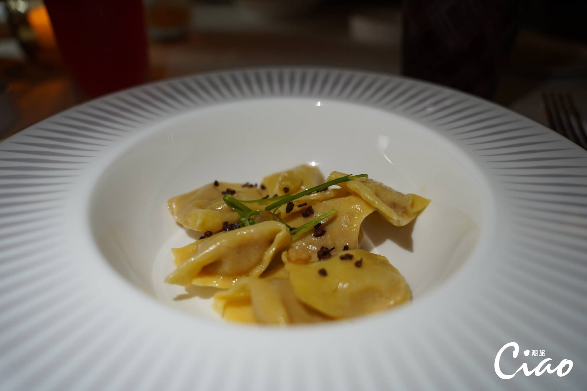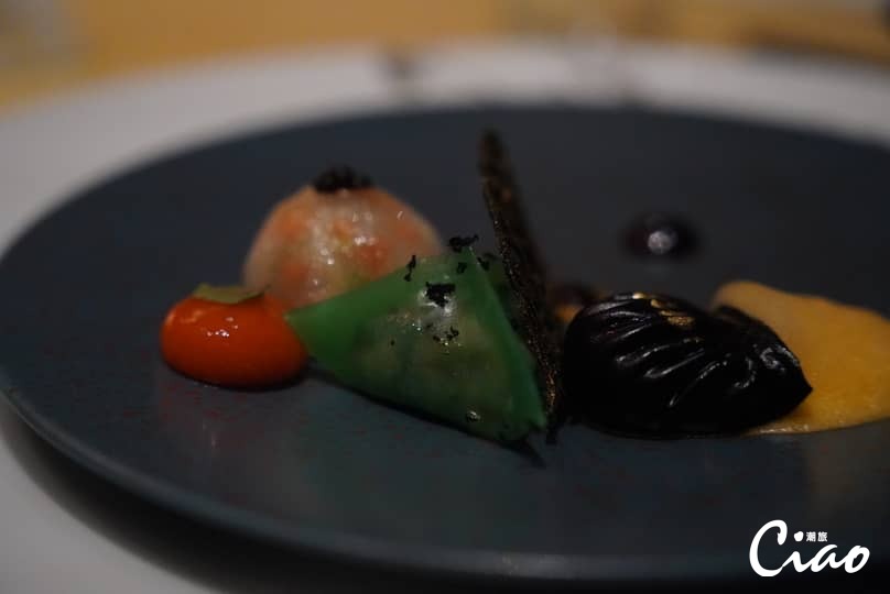 開胃菜是新鮮的生蠔佐青醬起司、醬香的香煎干貝,其鮮味與調味的互相輝映,讓人一口接著一口地吃完。接著上來的是紅湯的海鮮湯與鵝肝餃,餃類在義大利菜中是經典象徵,在主廚Andrea Spagoni的詮釋下,透過鵝肝與嚼感十足的餃皮配搭,讓鵝肝多層次的味道漫布口腔,豐富而不膩。高檔次的沙朗牛排更是餐廳的經典菜色,鮮嫩多汁的沙朗牛排及一旁的烤馬鈴薯,都讓人不自覺得清空餐盤,齒頰留香。