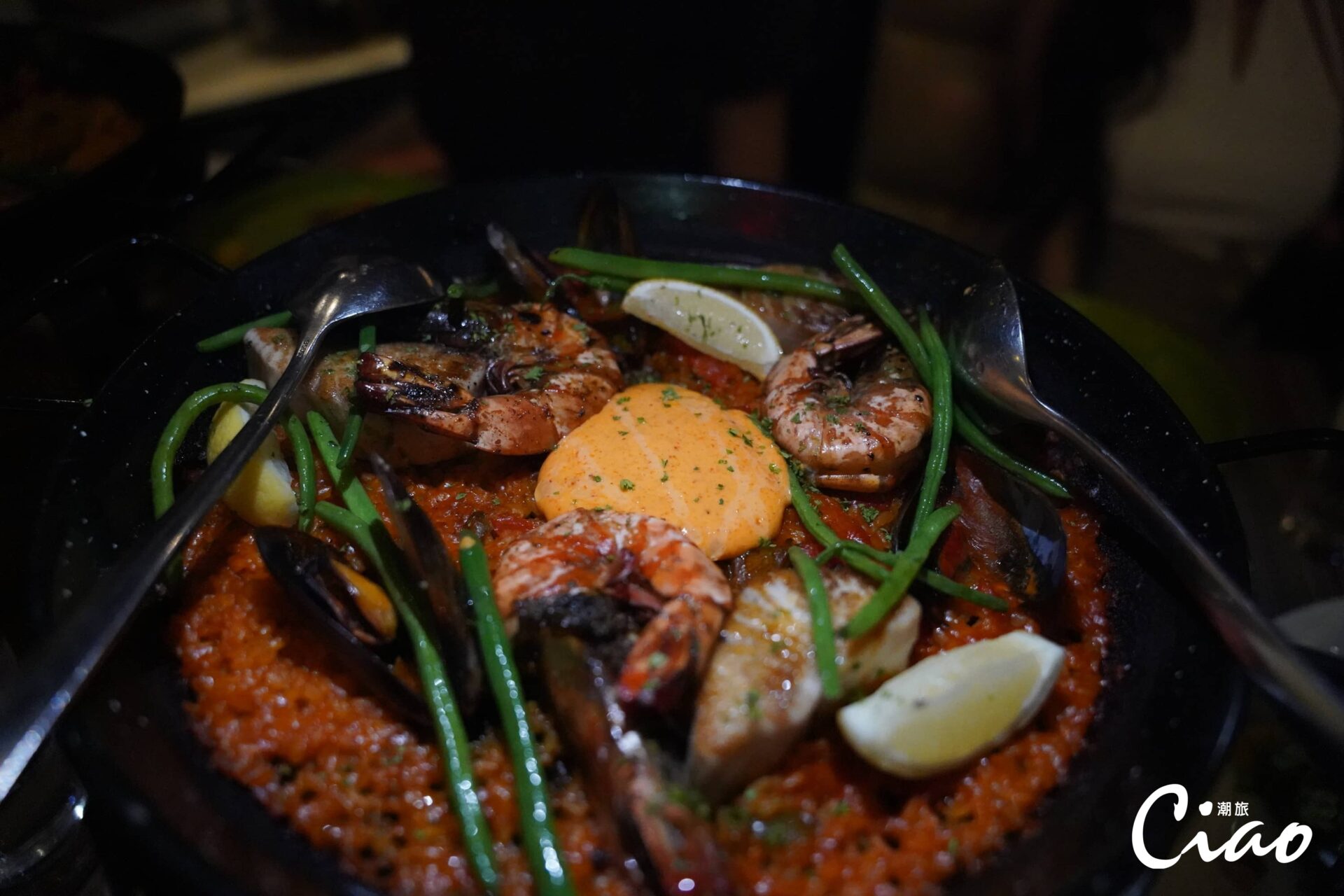 Waterside餐廳如其名,位於馬尼拉Solaire Resort酒店泳池旁,是夜晚派對的絕佳地點。走進Waterside,映入眼簾的是高聳的光幕酒櫃,擺著滿滿的酒與酒杯,彷彿是為了這個夜晚的派對打好基礎。走進餐廳,是廚師們正在準備料理,開放式的廚房讓訪客可以清晰地看見食材的製作過程,火焰、排盤、炙燒、燉煮樣樣來,鮮甜味美的海鮮,味道豐富的豬肋排,款式多樣的搭餐酒,點綴卻又令人驚豔的桌邊小食,濃郁的燉飯,軟嫩的炭烤牛排,擺滿餐桌。