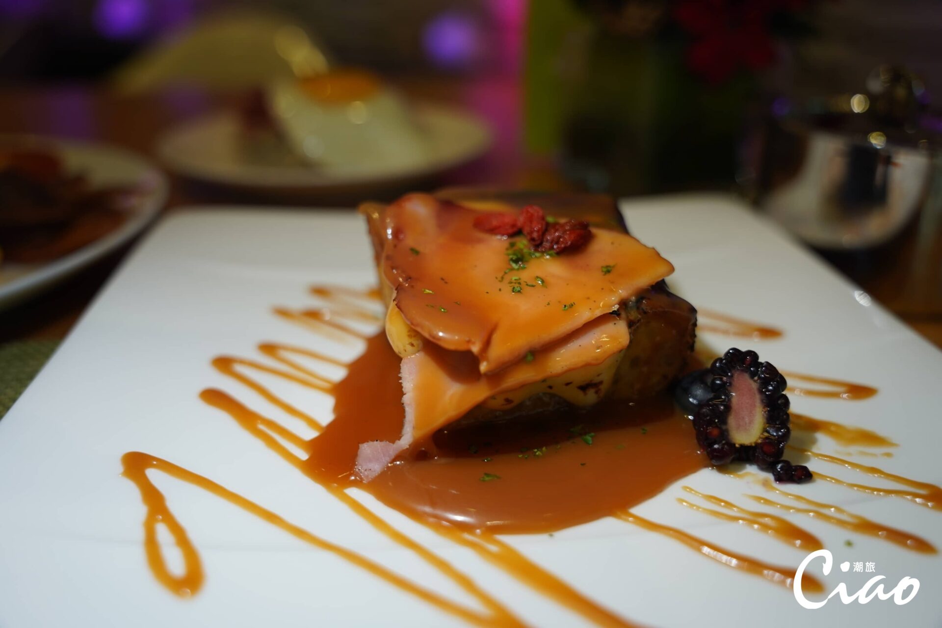 每天的吧台內容也都會有些許更動,長期入住的朋友也不用擔心會因為菜色重複而失去新鮮感,其經典菜色如太陽蛋火腿麵包,用半熟的蛋液包裹火腿及麵包,鬆軟的麵包裹上香濃蛋液,加上火腿的鹹,就像是一套組合拳般拳拳到肉,震驚味蕾,更有如太妃糖蛋糕這樣的甜點,綴以枸杞和火腿,讓太妃糖的甜膩多出新滋味,兼具Q彈與鬆軟的蛋糕體更令人驚豔,就算胃口已經飽足,卻能開啟深藏的第二個甜點胃,一口一口接續下肚,不自覺地清空餐盤。