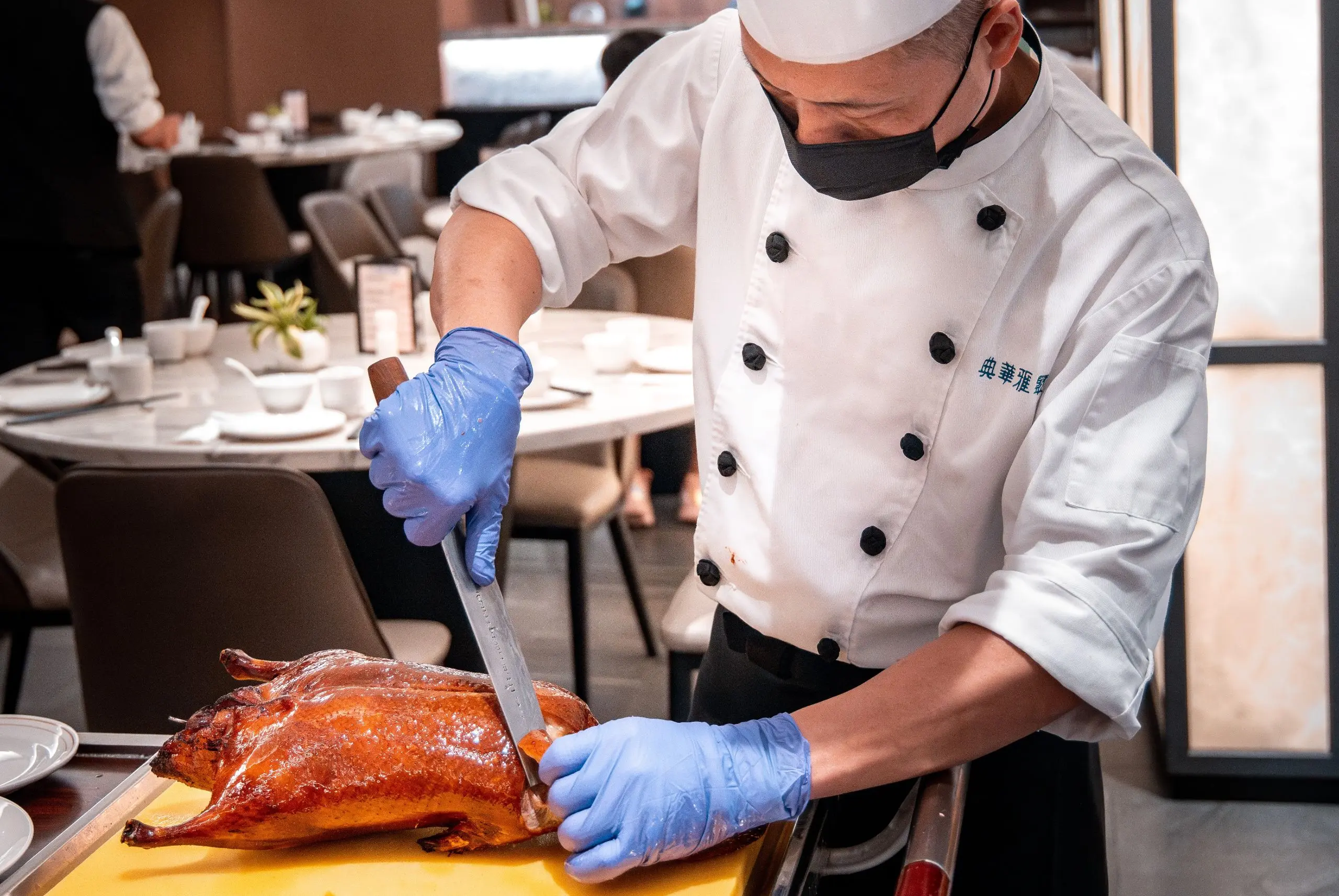 台北人氣烤鴨餐廳典華雅聚,於近日推出平日限定優惠的極品烤鴨宴,主打一鴨五吃,並搭配活體龍虎斑、港式點心及多款人氣熱菜,讓饕客在一席之間品嚐豐富層次的料理。典華雅聚的櫻桃烤鴨特別選用75日熟成櫻桃鴨,以南方烤鴨醃製方式、北方烤鴨的烤法與配料,透過南鴨北烤的手法,烤出鴨皮酥脆、焦糖色澤均勻的烤鴨,由主廚於桌邊現場片皮,呈現金黃酥脆外皮與軟嫩鴨肉的完美對比,堪稱一場美味饗宴。