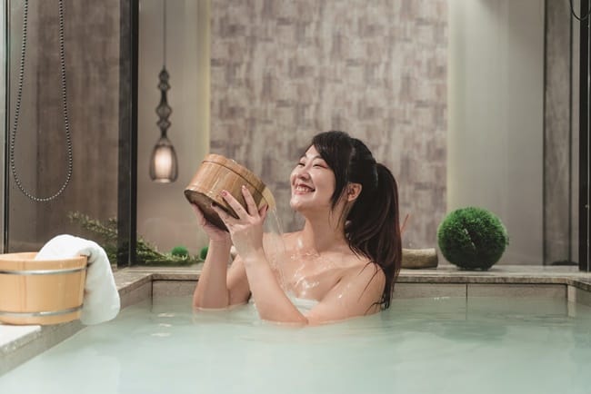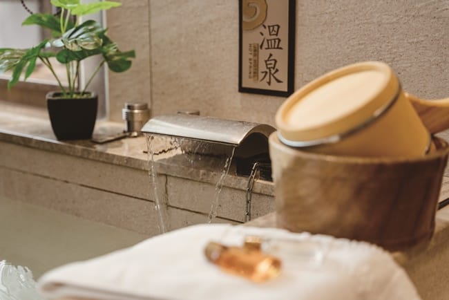 每間客房內都擁有泡湯浴池,白磺泉質讓肌膚滑嫩,經營者更在既有有限的格局與坪數之下,採用透明玻璃或鏡面設計,加大視覺空間及通透感,泡湯的同時就能一眼望見窗外藍天白雲,營造出露天風呂的開闊氛圍。還能走出小陽台享受清新空氣,遠眺著名的北投溫泉博物館,感受宛若置身日本京都的湯享之旅。