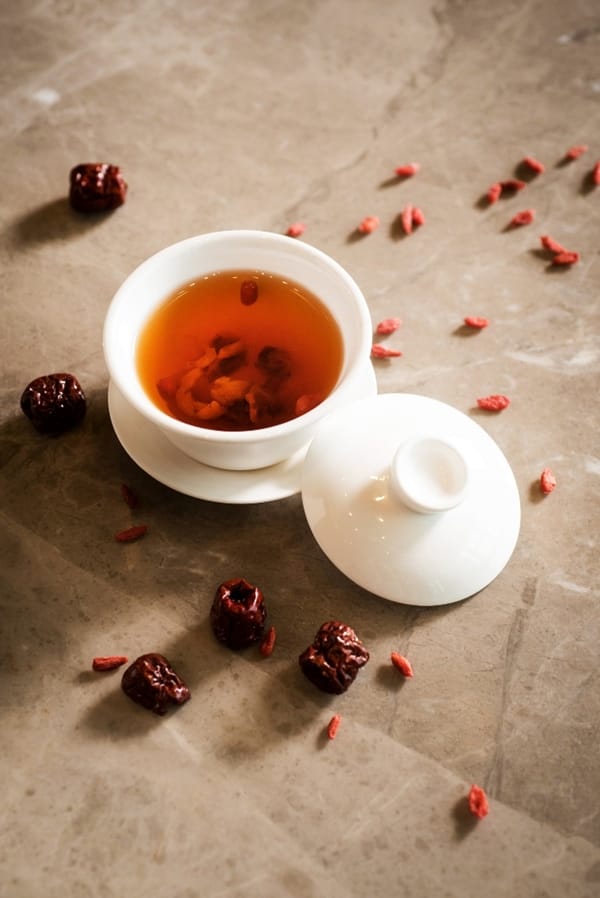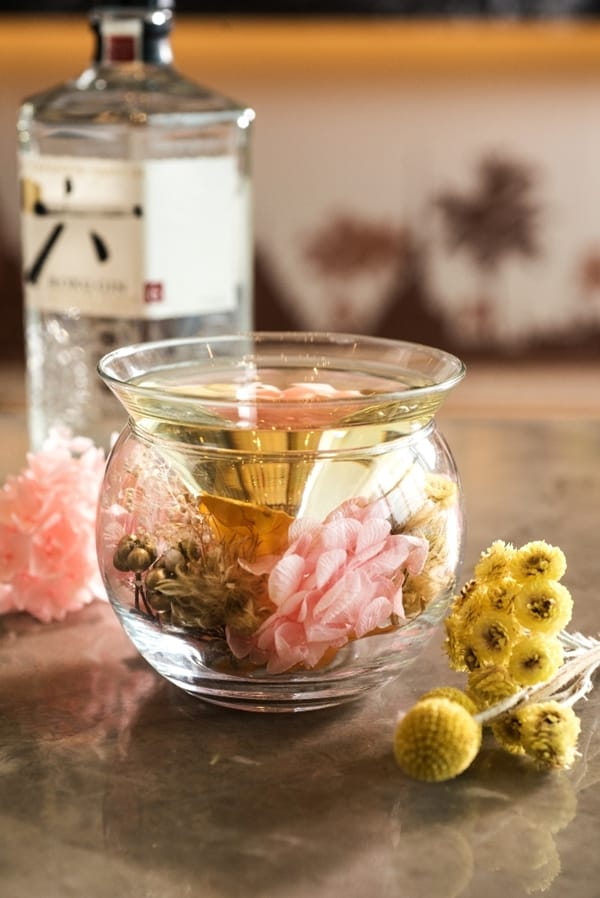 THE LOUNGE大廳酒吧發揮創意,特別從西式茶及中式茶各精選出4款不同的茶,並將這些茶變化成調酒。西式茶系列從花果茶作延伸,「肉桂蘋果派」以蘋果茶為主軸,加入自製肉桂糖調製而成,口感就像現烤出爐的香濃蘋果派;「玫瑰荔枝馬卡龍」以玫瑰果粒茶、荔枝酒為基底,最後加入氣泡酒,層次感更加豐富;「菊蜜拉斯卡」則是從經典調酒Caipiroska為發想,將洋甘菊茶浸製在伏特加內,再加入蜂蜜及檸檬,喝起來更清爽;「綜合莓果馬丁尼」將覆盆子櫻桃茶直接煉化成糖,再運用綜合莓果粒&鳳梨汁調製而成,酸酸甜甜是戀愛的滋味。