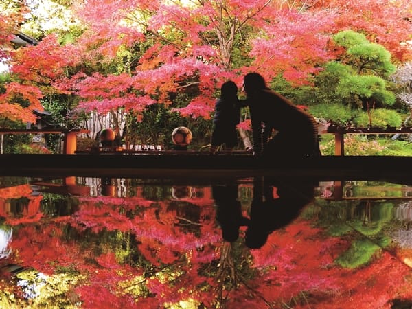佐世保市驚嘆壽福寺的鏡中倒影紅葉