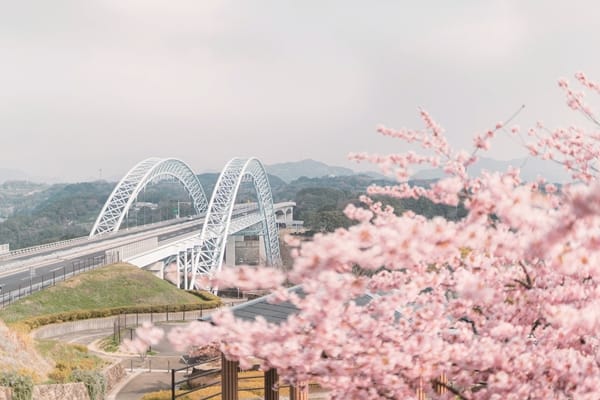西海市新西海大橋上的櫻花粉漂亮