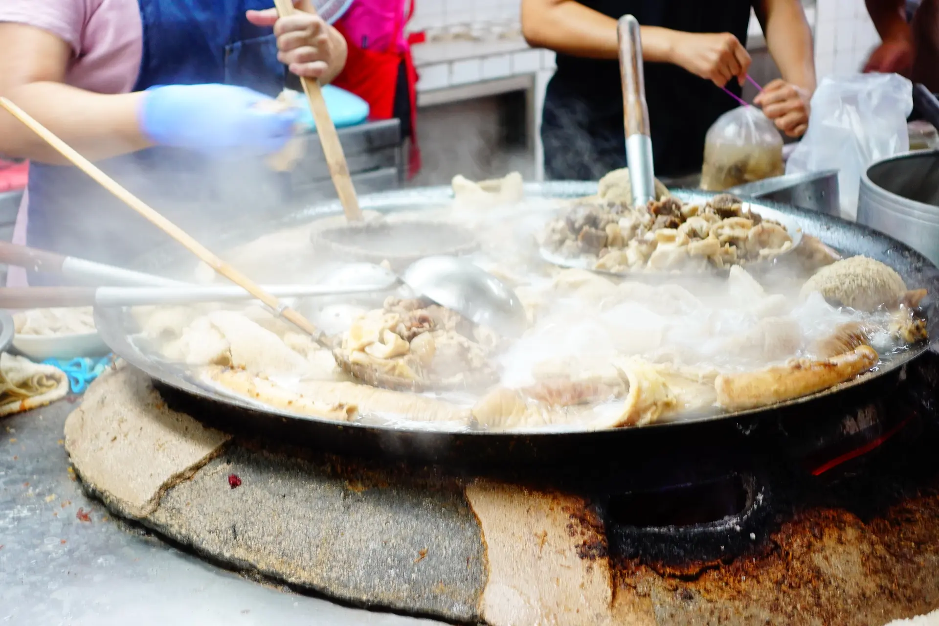 自嘉義火車站沿中山路向東走去,會經過圓環的投手雕像,繼續沿公明路直走,在右轉忠孝路後不久,東市場就近在咫尺,而經營80多年的「王家祖傳本產牛雜湯」即藏身其中。在超大鐵鍋的燉煮下,包含牛肉塊、牛筋、牛肚、牛心等,幾乎可以品嚐到所有牛身上的精華,可以選擇現燙或是清燉,皆各有不同風味。點上一大碗牛雜或綜合湯,內行的還會再加點一碗白米飯,從軟嫩的肉塊、Q彈富有咬勁的牛肚、牛腸,到經過牛骨慢燉的清甜湯頭,入口後瞬間即明白這間店能在市場內傳承至今的個中原因。