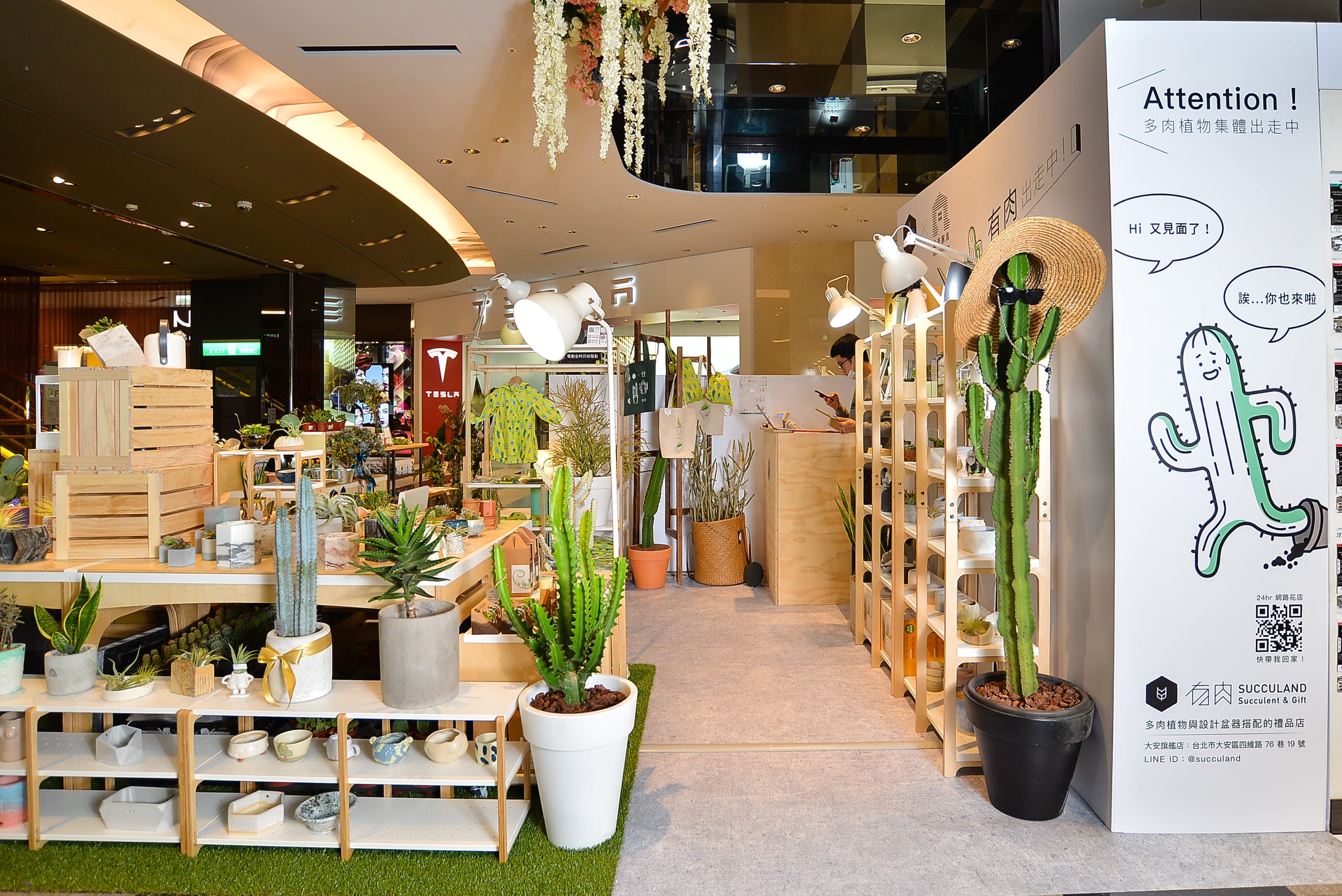 「有肉 Succulent & Gift」首間百貨快閃店成立在「信義新光三越A11」,這次有肉把植物園搬進百貨公司,上百盆的多肉植物集體出走,有多肉肥胖系、軟毛療癒系、特殊怪奇系、刺刺溫柔系的各式多肉齊聚一堂。