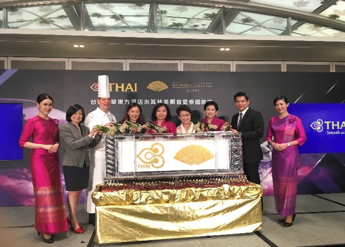 泰國航空首度與台北文華東方酒店攜手合作推出米其林星級空中饗宴,自2018年6月1日起,在台北飛往曼谷的下午航班TG633與晚上航班TG635的商務艙內,隆重推出獨一無二的米其林空中饗宴。