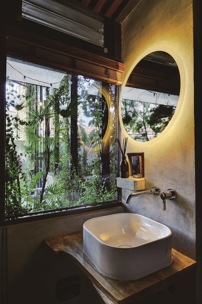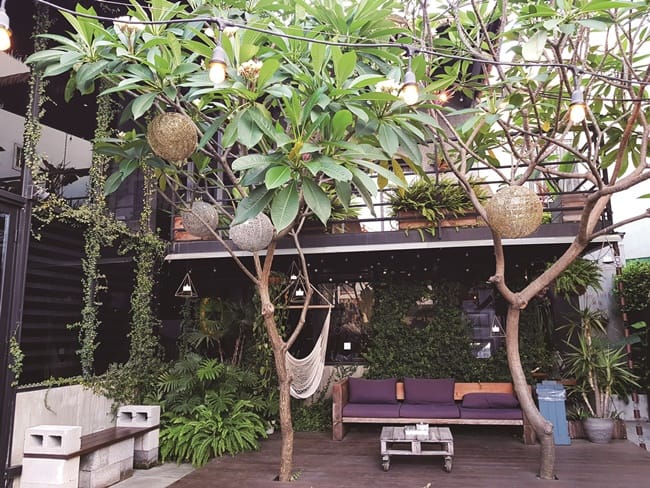 低調的灰階色圍牆,推開「28 the loft」的深木色大門,映入眼簾得是南洋風情的院子,綠色草坪、熱帶及攀牆植物、妝點著燈飾的大顆雞蛋花樹、戶外休閒沙發與吊椅等構築閒適悠然場域,感覺南台灣的陽光都不那麼炙熱了。「28 the loft」特色民宿是由哥哥Muska與弟弟Eden聯手規劃,從設計施工、裝飾佈置到整理經營都是親力親為,從空間風格呈現至軟件、備品的選擇服務,一入住即可感受專屬於28的度假氛圍,貼心的細膩之處,讓人印象深刻。