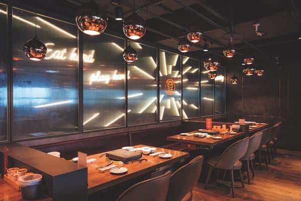 坐享「燒肉同話」的美感空間,全台7家店整體以輕工業風格再結合時尚元素,打造出各店或童趣、或低調奢華、或復古、或食尚藝術⋯⋯之特色,暖黃燈光再配上節奏感音樂,又略帶夜店的輕鬆熱鬧。更貼心的是沙發座椅區座位間隔較大,讓用餐舒服自在,採用電烤盤漩渦式設計使熱度平均,下吸式排煙,身上不會有惱人的油煙味,更希望大家可以無拘地大啖美食、享樂同在、團聚,體驗一場極致美味的燒肉饗宴。